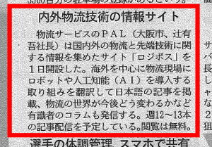 「日刊産業新聞」にて物流情報ウェブサイト「ロジポス(THE LOGISTICS POST)」ご紹介いただきました