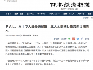 」に、北海道大学と提携して、物流現場の人員配置を人工知能(AI)で最適化するシステムを開発の記事を掲載いただきました。