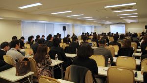 今年度も昨年度の振り返りから実施状況。また、今年度の事業展望などを各担当が登壇し、全社員にプレゼンしました。