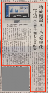 「日刊工業新聞」にて「AI(人工知能)を使った物流施設効率化」に関する記事を掲載いただきました