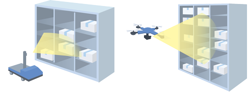 棚と荷物へICタグを貼り付け、AGVやドローンにリーダーを搭載して、自動運転中にタグを検出します。そのデータを解析し、実在庫のデータを作成・特定する仕組みとなっており、ほぼ100%の在庫精度が出ています。